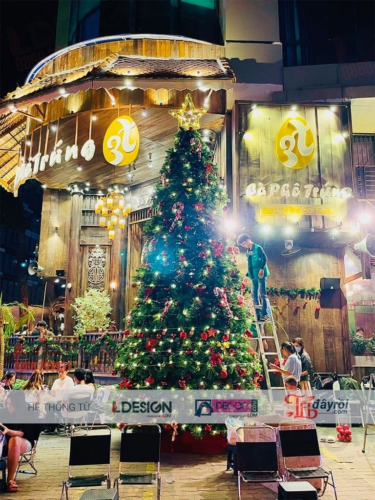 Cây 12m 84.700.000 Đèn LED, bóng trang trí, ruy băng, ngôi sao đỉnh cây