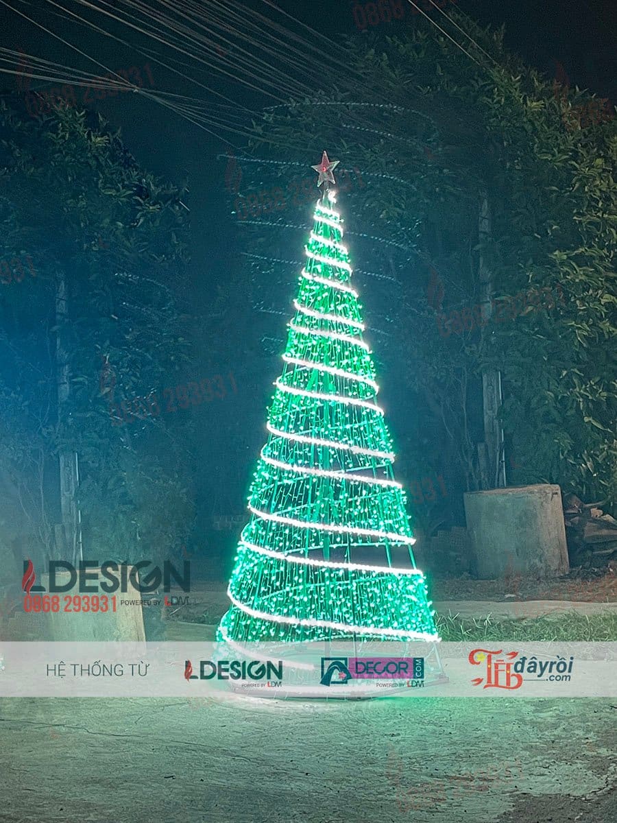 Cây 5m 25.100.000 Đèn LED, bóng trang trí, ruy băng, ngôi sao đỉnh cây